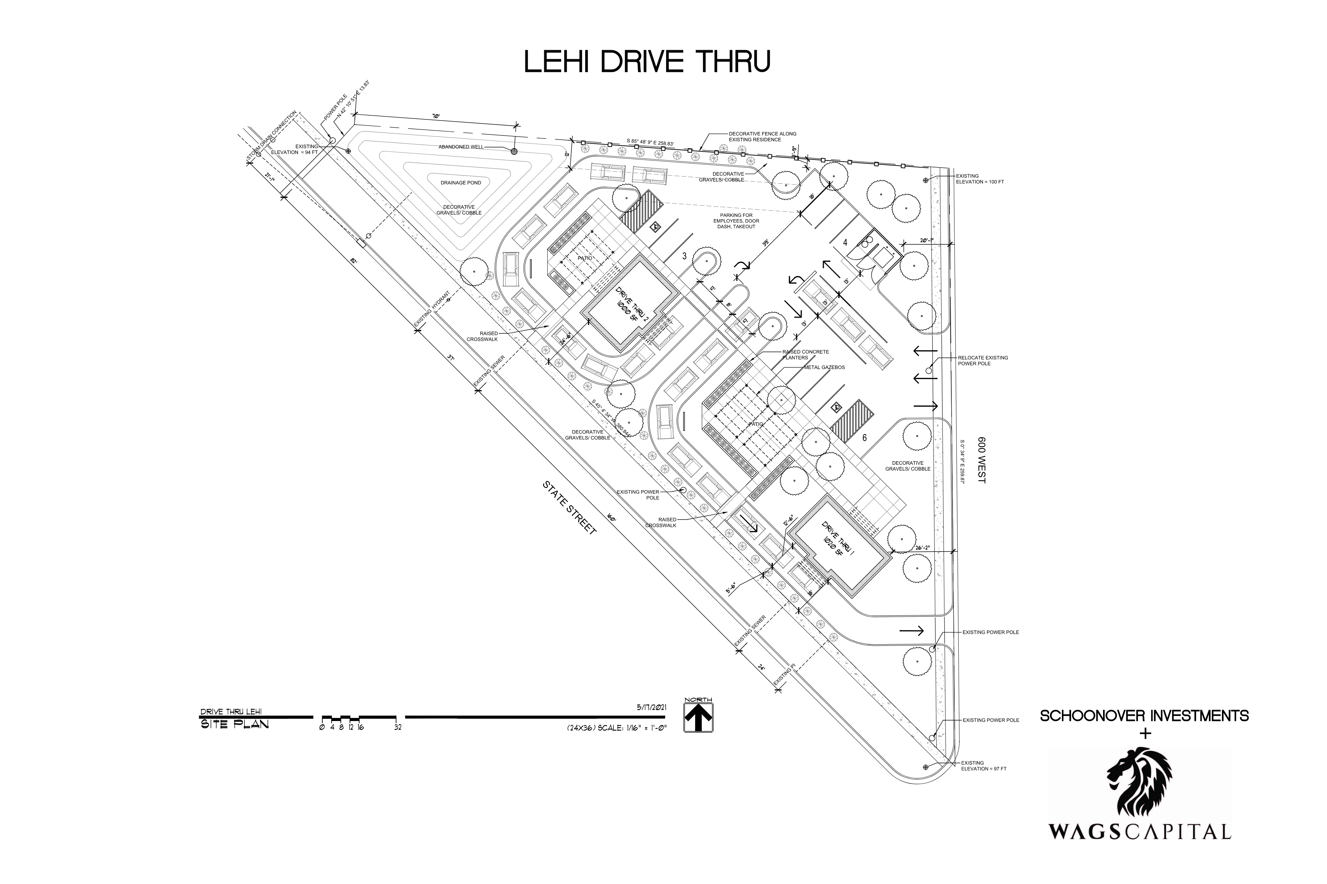 The applicant requests review and approval of the Lehi Drive Thru Concept located at 600 West State Street. The concept shows the layout of the two drive thru buildings, parking, and potential future landscaping. The development of this parcel is being done in conjunction with the City to complete improvements along State Street. You can see a copy of the proposed plan in the "Documents" section on the right hand side of this page.