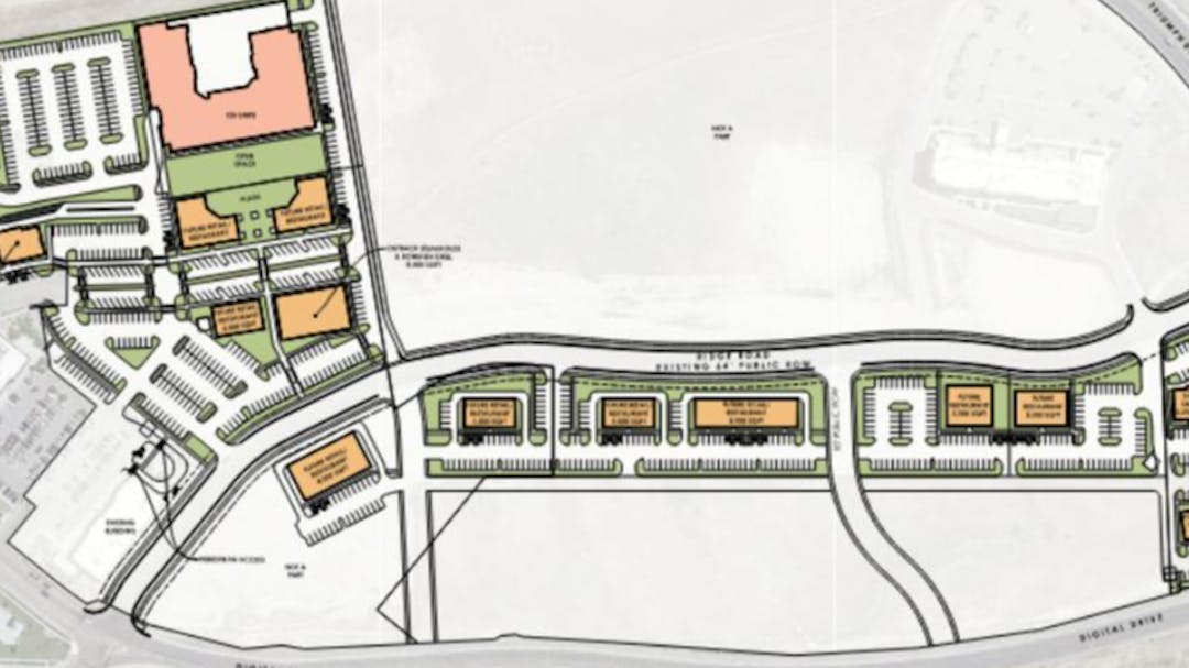 The concept plan shows several future retail pads with drive-thrus. These drive-thrus will require a conditional use permit with future site plan submittals.
